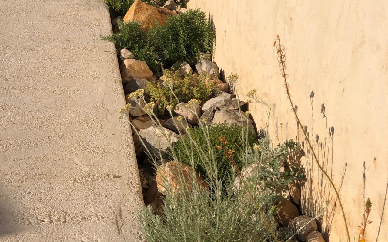 Exemple de jardin de garrigue avec paillage minéral calcaire en palette végétale adaptée au sec, au chaud et au froid (source : Pierre David)