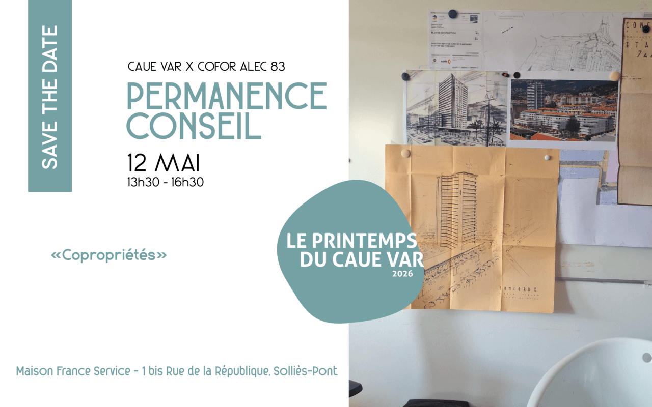 Dans le cadre de la Saison 2 “Habiter l’ensemble”, le CAUE Var et la COFOR ALEC 83 proposent une permanence de conseil à destination des particuliers, des copropriétés, des syndics et des bailleurs sociaux.